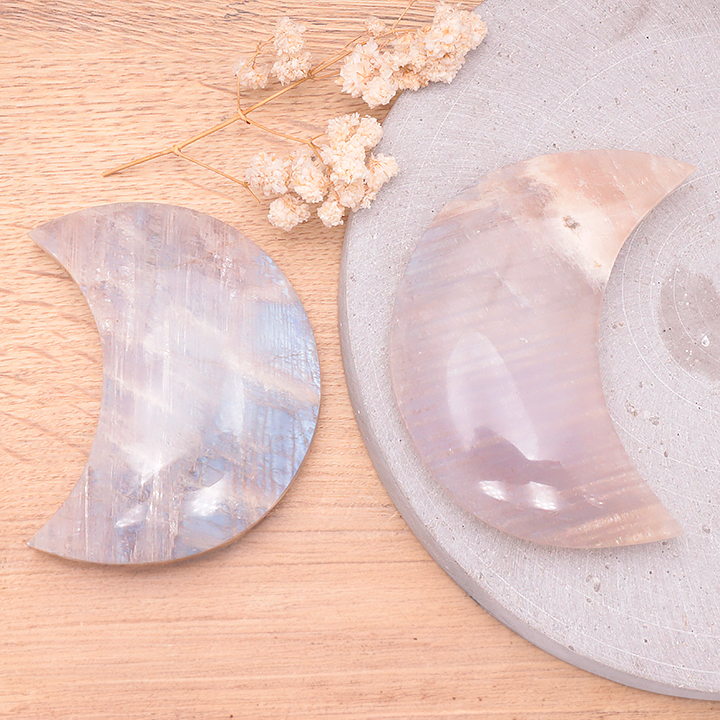 Chez Camille Ambiance Nature, nous proposons plusieurs déclinaisons de la pierre de lune, visitez notre site ou contactez-nous pour commander.