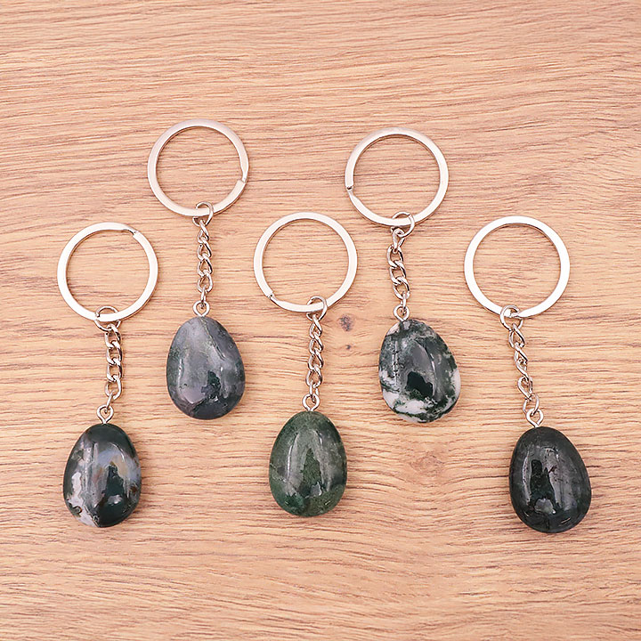 Porte clés forme goutte agate mousse A (lot 5 pièces)