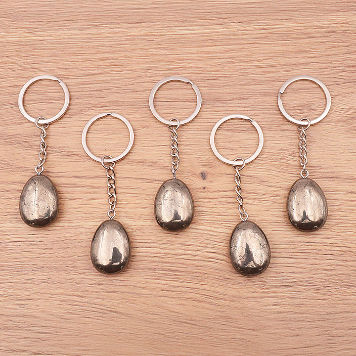 Porte clés forme goutte pyrite AA (lot 5 pièces)