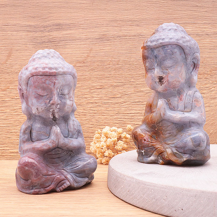 Bracelets et pendentifs en agate indienne. Galets cœur, figurines et pierres roulées d'agate indienne.