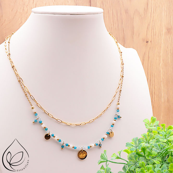 L’aigue-marine, pierre des voyageurs et de l’expression, évoque l’eau pure et le calme intérieur. Elle soutient la communication fluide, la créativité et la paix intérieure.