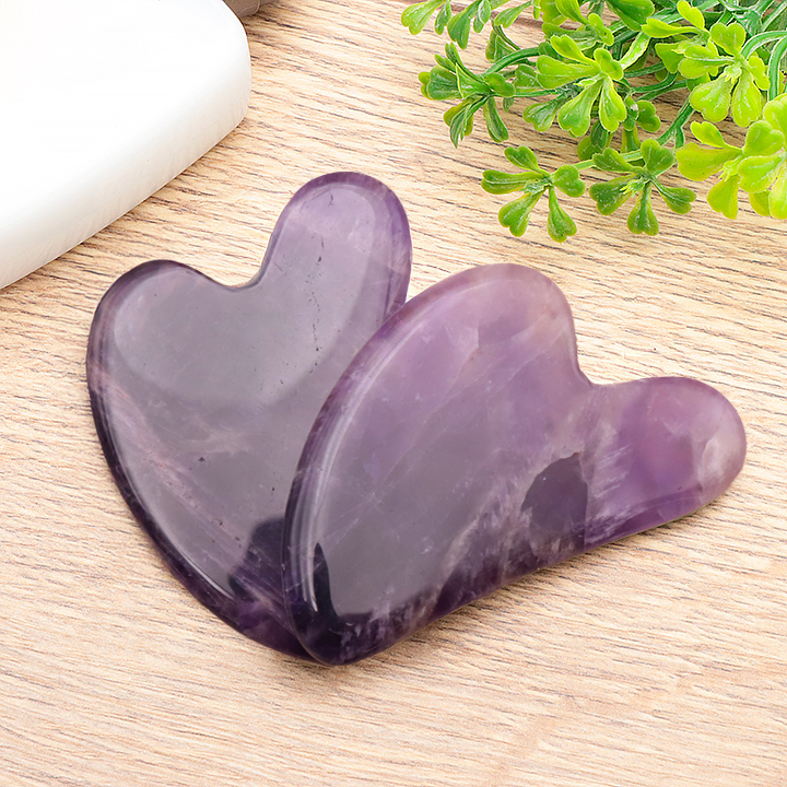 Gua sha coeur 80mm améthyste Brésil A (lot 3 pièces)