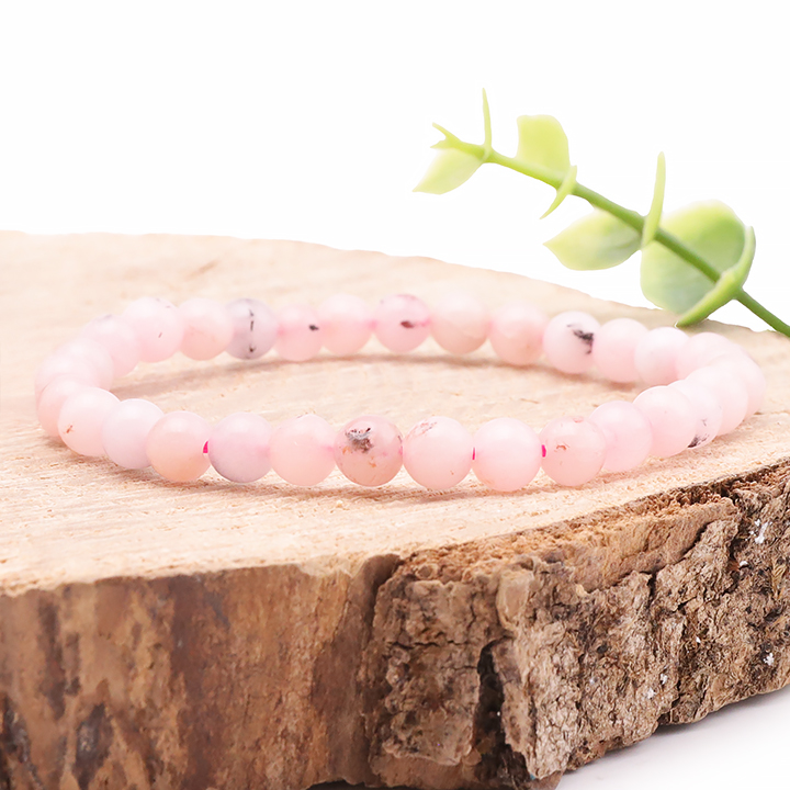 Bracelet boule 06mm opale rose AA