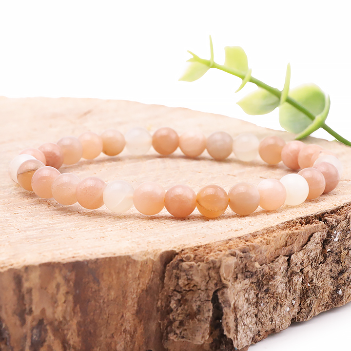 Bracelet boule 06mm pierre de lune beige A
