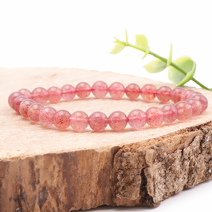 Bracelet boule 06mm quartz fraise (hématoïde) AA