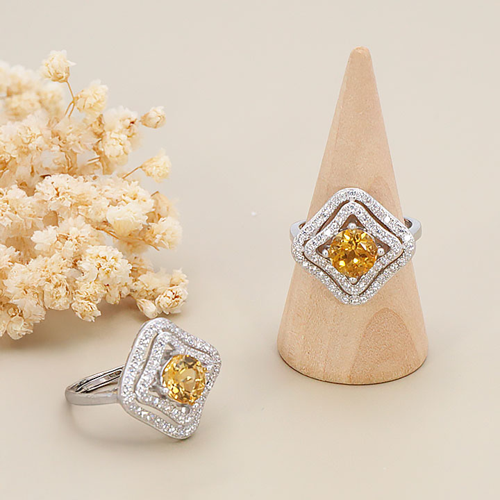 Bague argent 925 rhodié modèle 15 citrine facettée AAA (1 pièce) lot N°1A0126