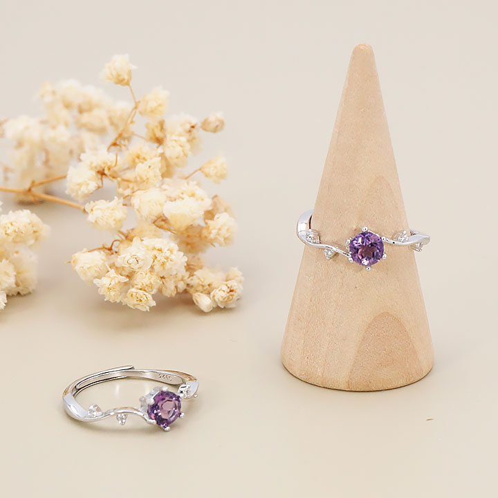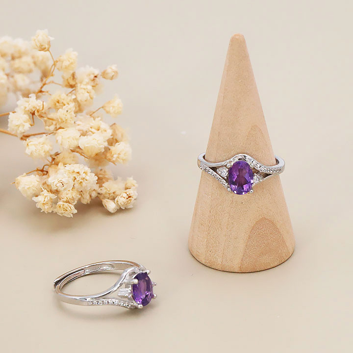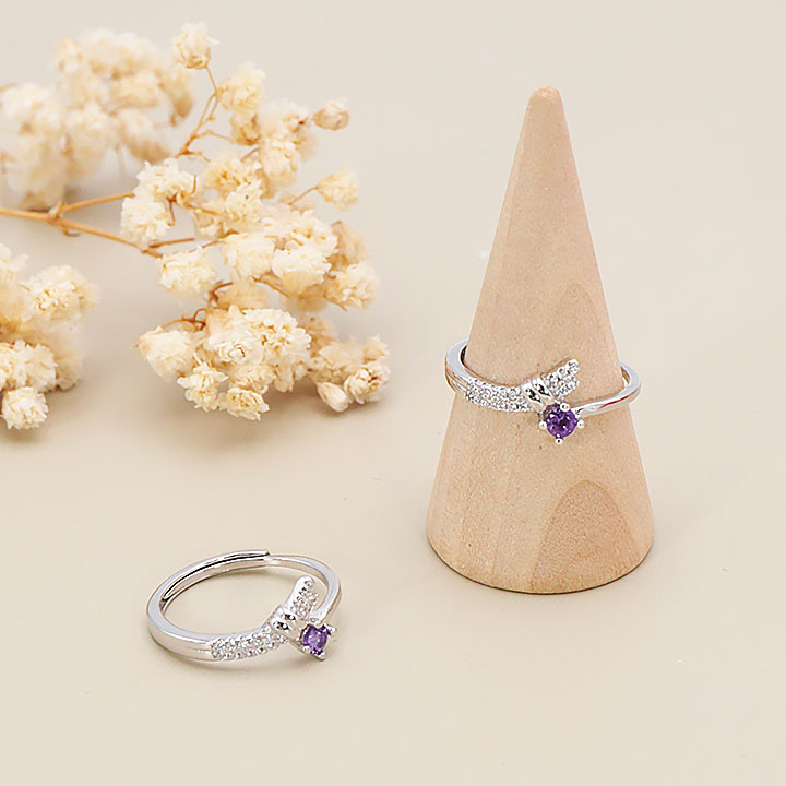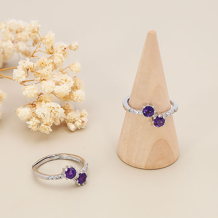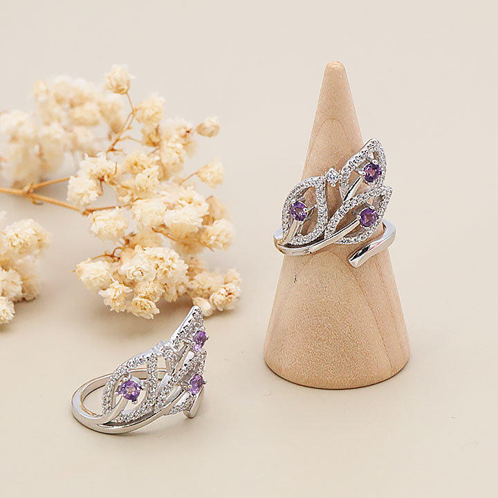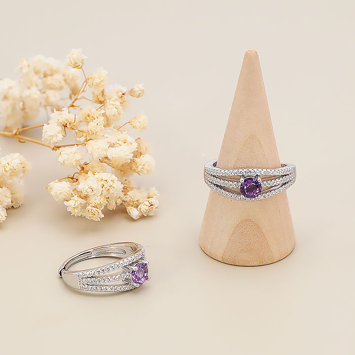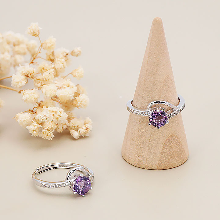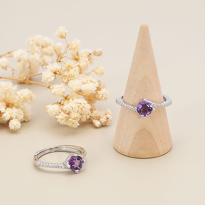 Bague argent 925 rhodié modèle 11 améthyste facettée Brésil AAA (1 pièce) lot N°1A0126