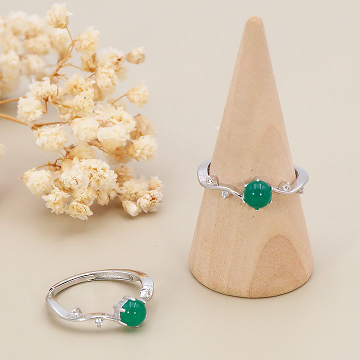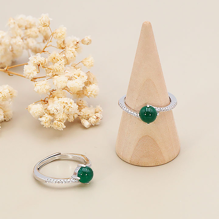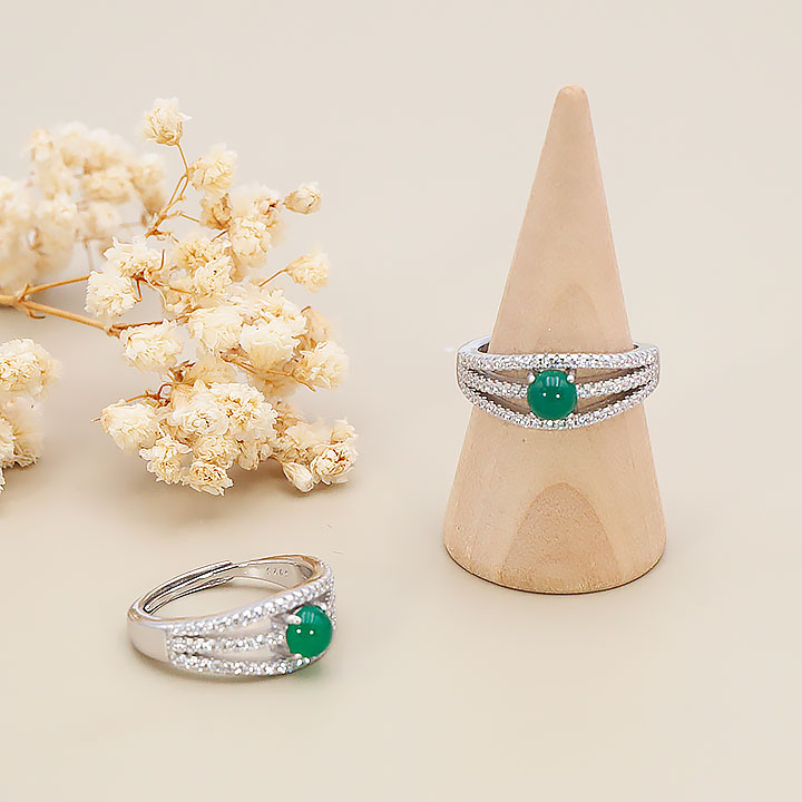 Bague argent 925 rhodié modèle 11 chrysoprase AA+ (1 pièce) lot N°1A0126