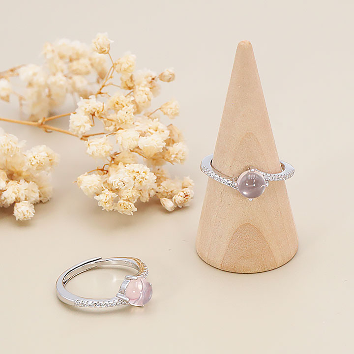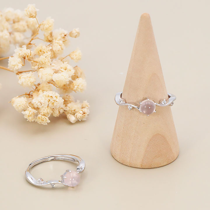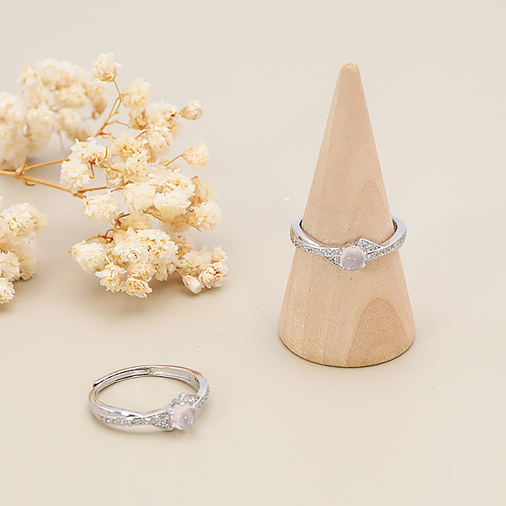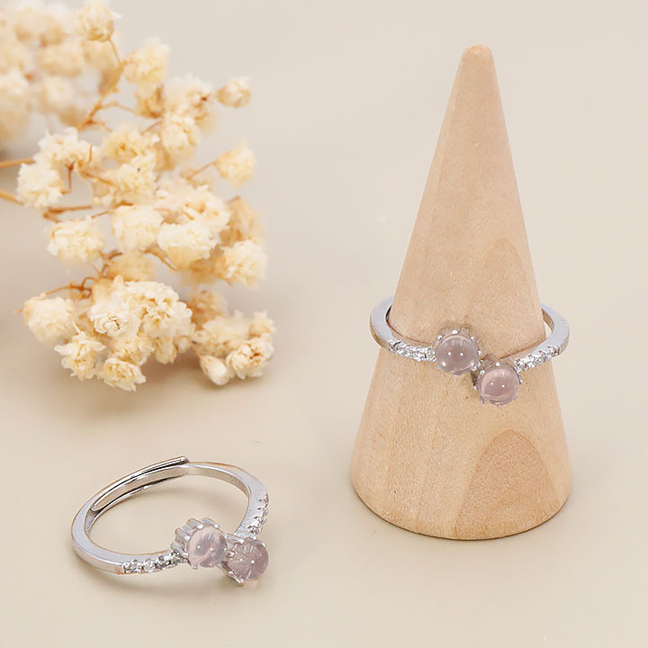 Bague argent 925 rhodié modèle 12 quartz rose Madagascar AA+ (1 pièce) lot N°1A0126