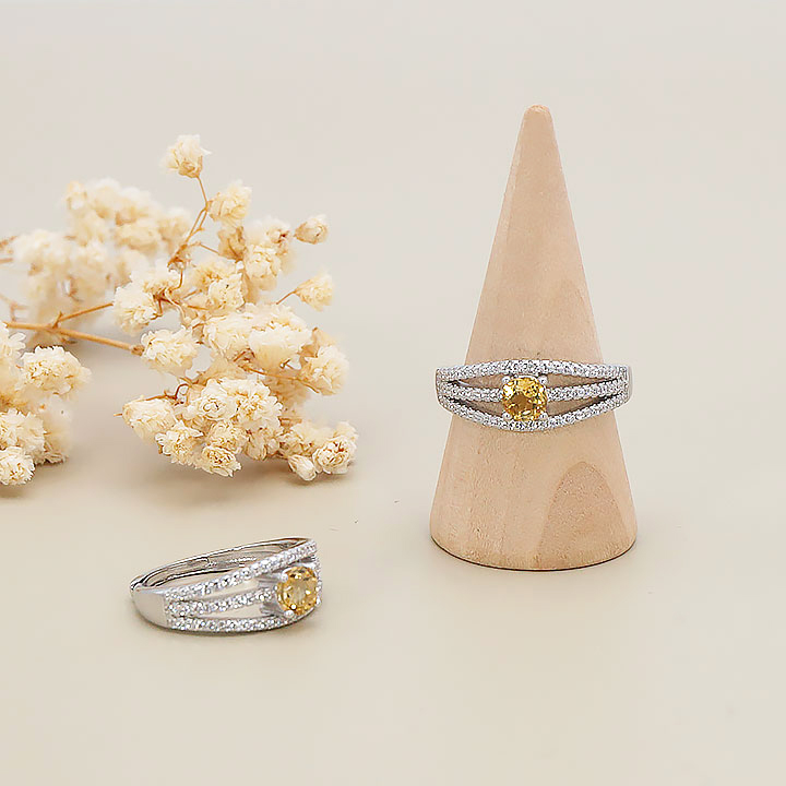 Bague argent 925 rhodié modèle 11 citrine facettée AAA (1 pièce) lot N°1A0126