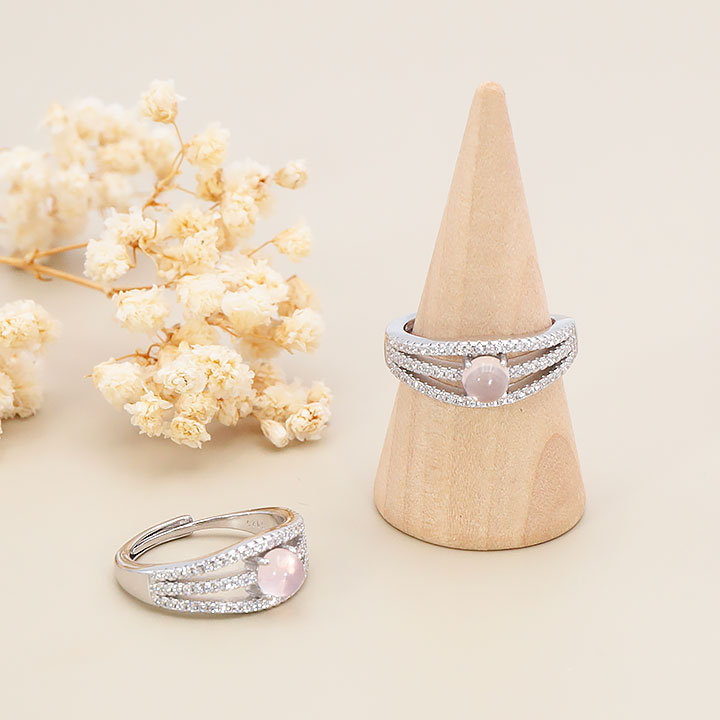 Bague argent 925 rhodié modèle 19 quartz rose Madagascar AA+ (1 pièce) lot N°1A0126