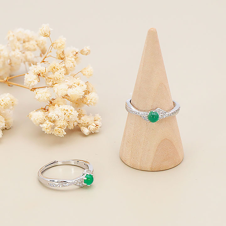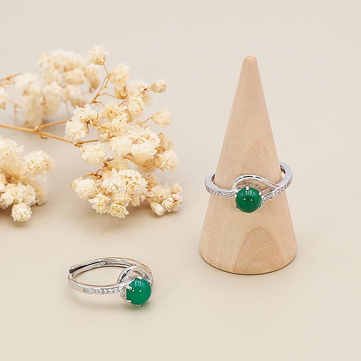 Bague argent 925 rhodié modèle 19 chrysoprase AA+ (1 pièce) lot N°1A0126