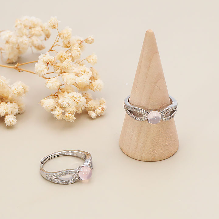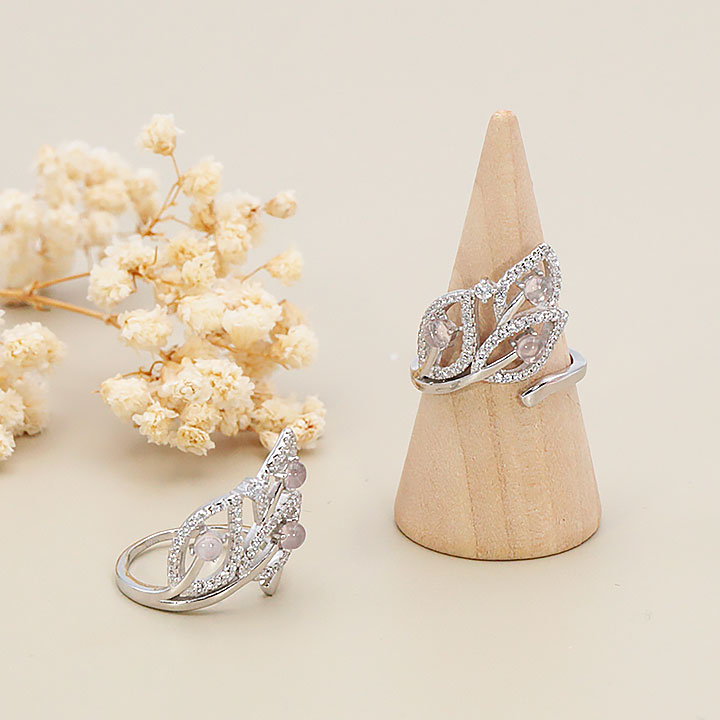 Bague argent 925 rhodié modèle 18 quartz rose Madagascar AA+ (1 pièce) lot N°1A0126