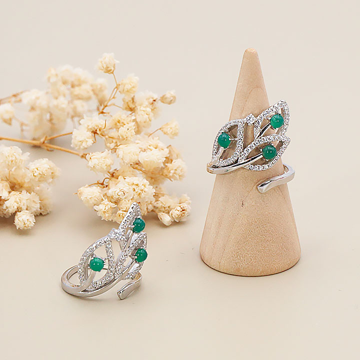 Bague argent 925 rhodié modèle 14 chrysoprase AA+ (1 pièce) lot N°1A0126