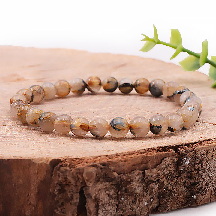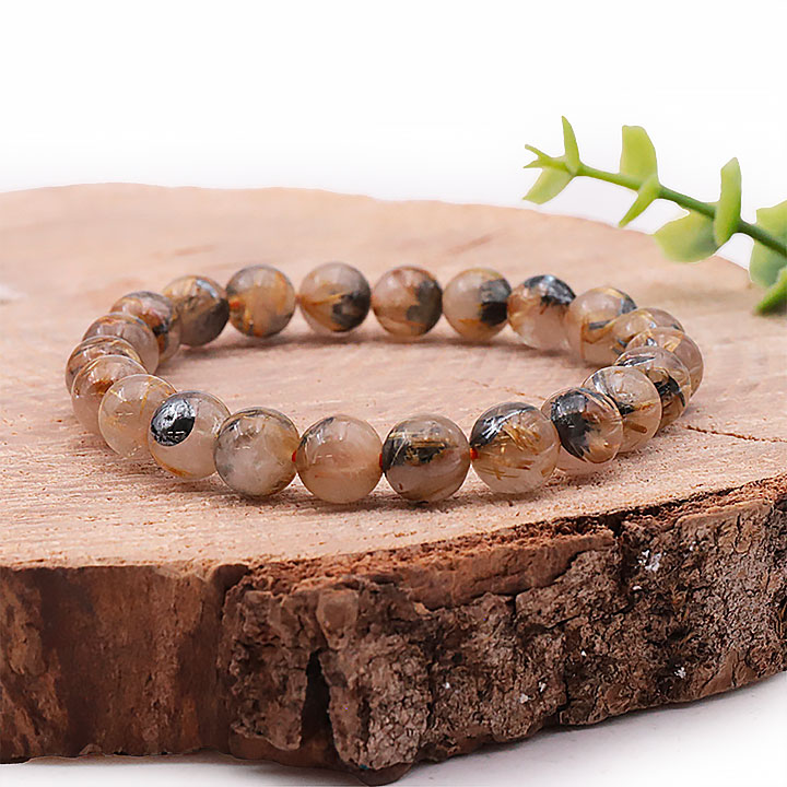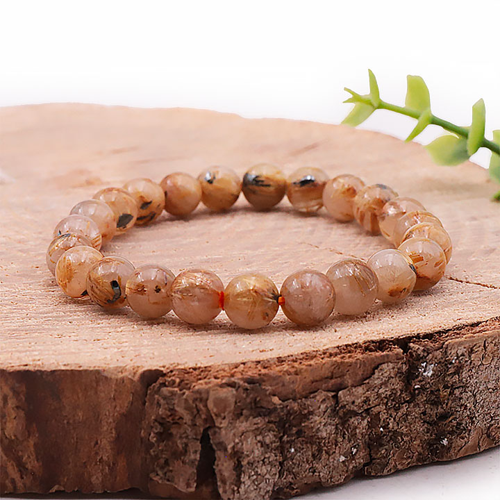 Bracelet boule 08mm cristal de roche rutile hématite AA (08,5-09,5mm)