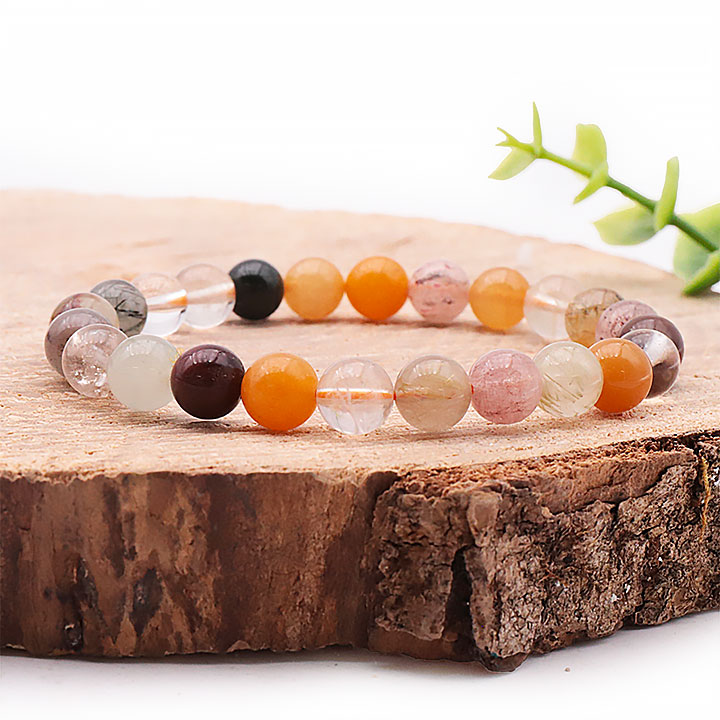 Bracelet boule 08mm cristal de roche rutile multicolore A