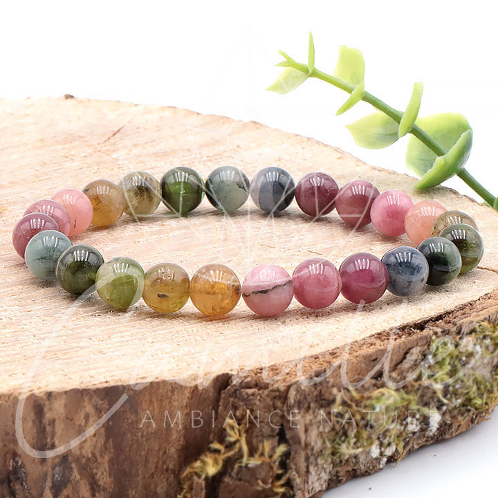 Bracelet boule 08mm tourmaline multicolore AA+ (07,5-08,5mm)