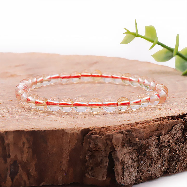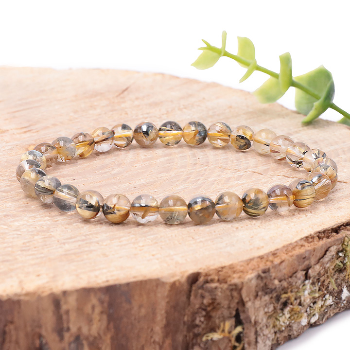 Bracelet boule 06mm cristal de roche rutile multicolore A