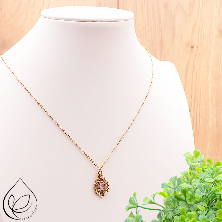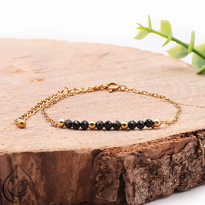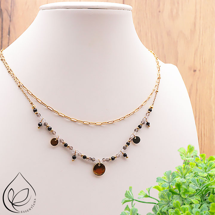 Collier Iris doré tourmaline noire, cristal de roche fumé AA