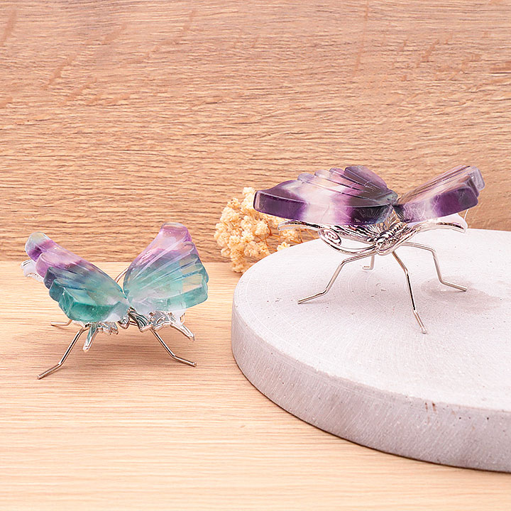 Papillon avec socle 120 à 150mm fluorine rainbow AA (1 pièce)