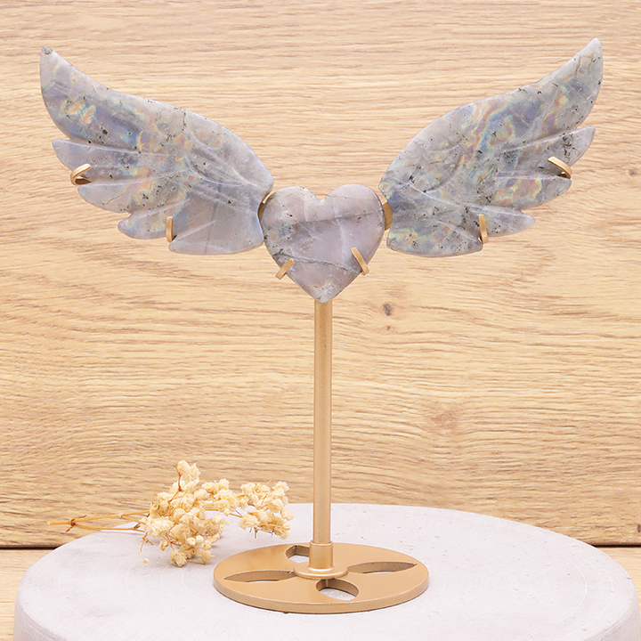 Aile et coeur avec socle 170 à 190mm labradorite A (1 pièce)