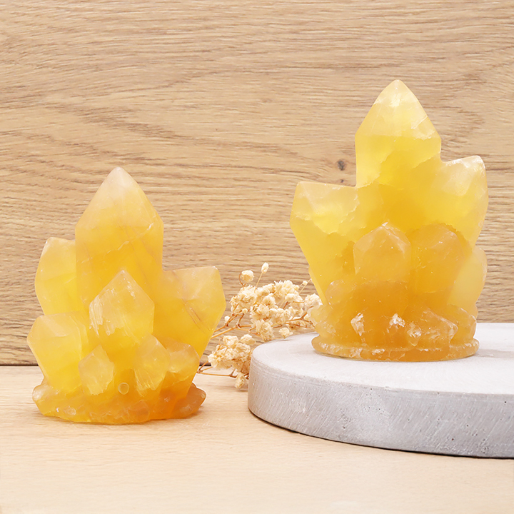 Amas de cristaux 90mm fluorine jaune AA (1 pièce)