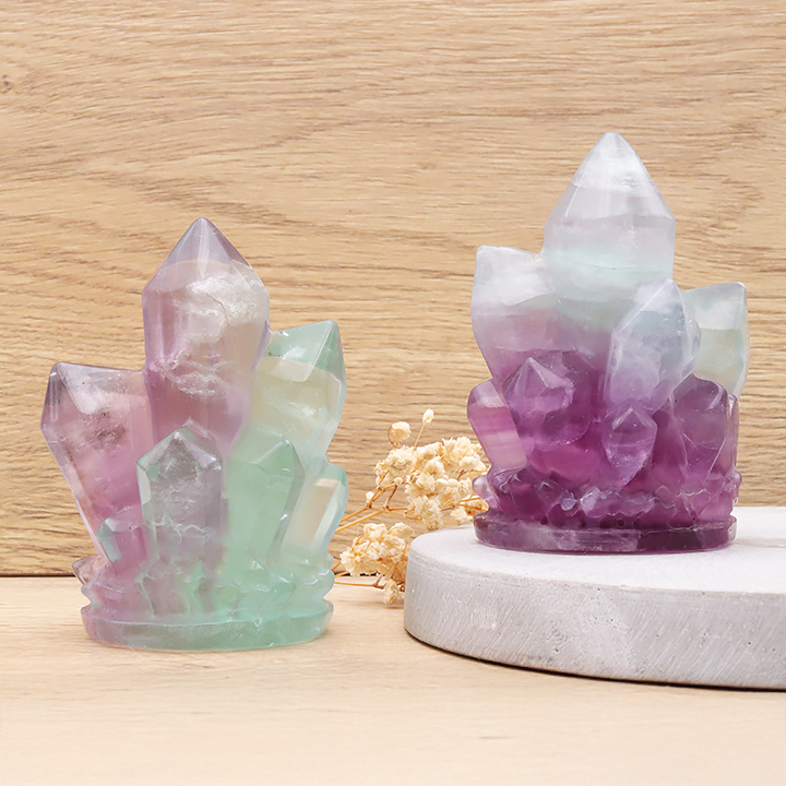 Amas de cristaux 90mm fluorine multicolore AA (1 pièce)