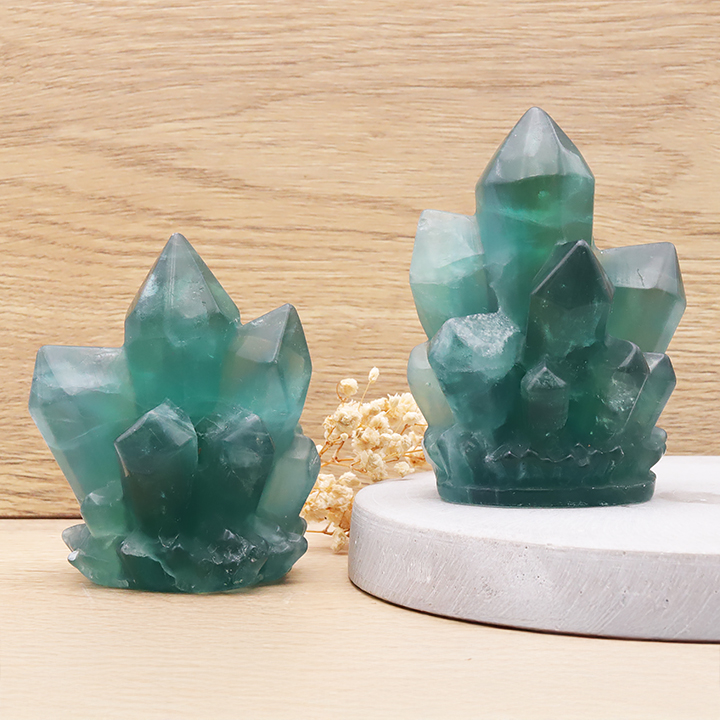 Amas de cristaux 90mm fluorine verte foncée AA (1 pièce)