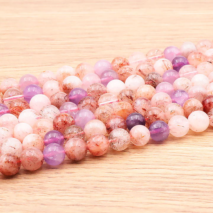Fil de perles 08mm tourmaline rose sur eudialyte AA