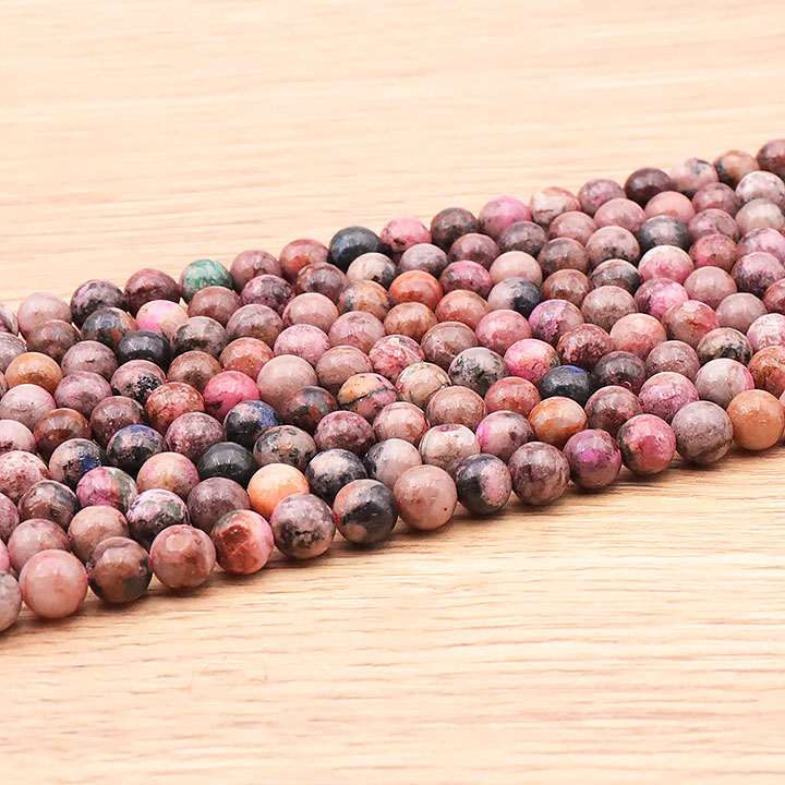 Fil de perles 06mm bois fossile rouge Indonésie A