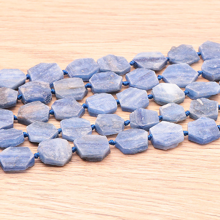 Fil de perles hexagonales 14mm cyanite bleue AA