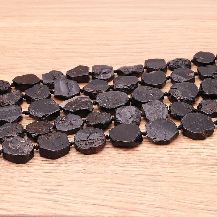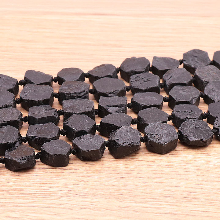 Fil de perles hexagonales 16mm tourmaline noire brute A
