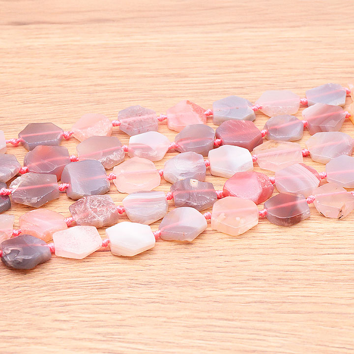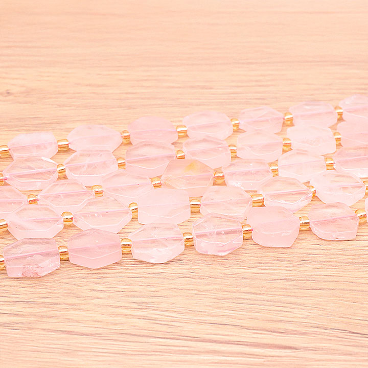 Fil de perles hexagonales 16mm quartz rose Afrique du Sud AA