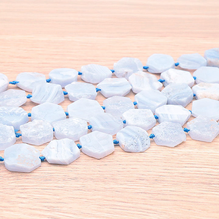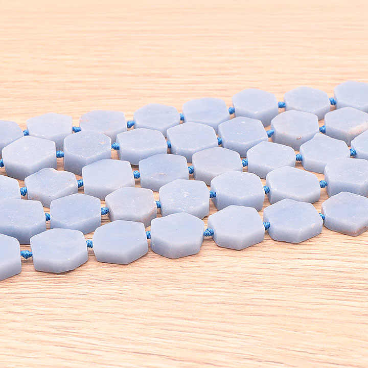 Fil de perles hexagonales 16mm calcédoine bleue Namibie AA