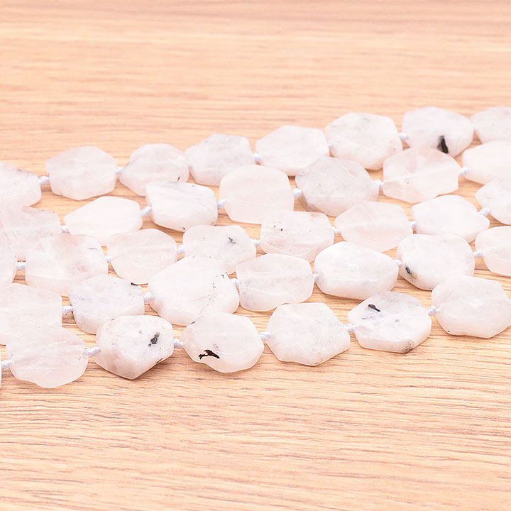 Fil de perles hexagonales 16mm pierre de lune beige A
