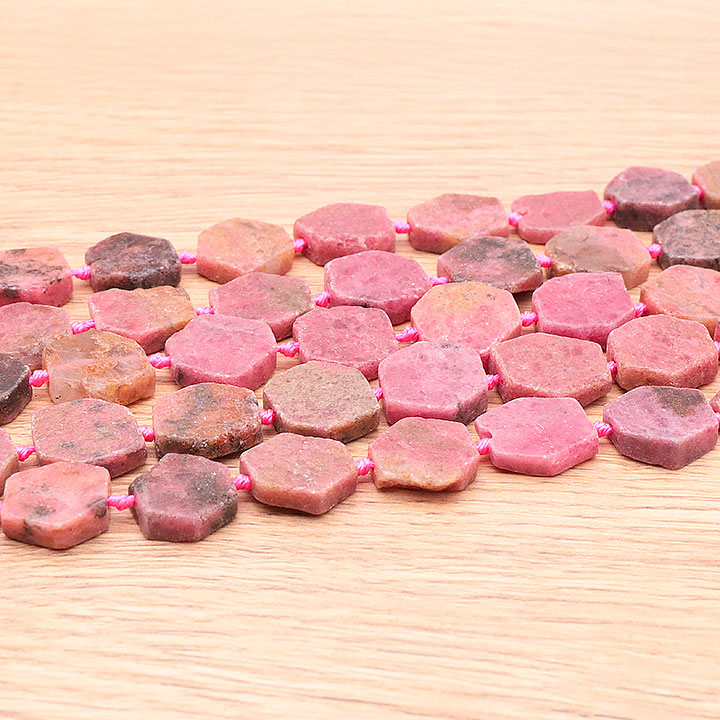Fil de perles hexagonales 16mm rhodonite Brésil A