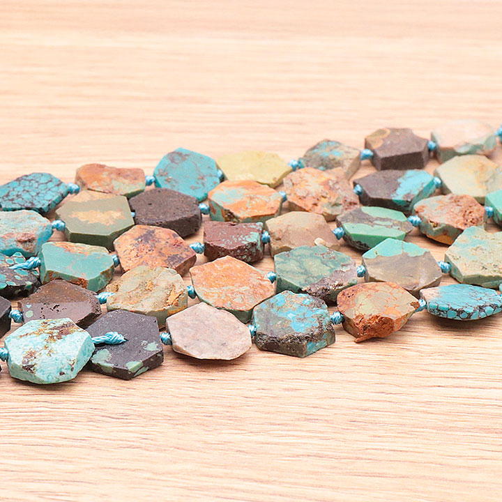 Fil de perles hexagonales 16mm turquoise Tibet AB