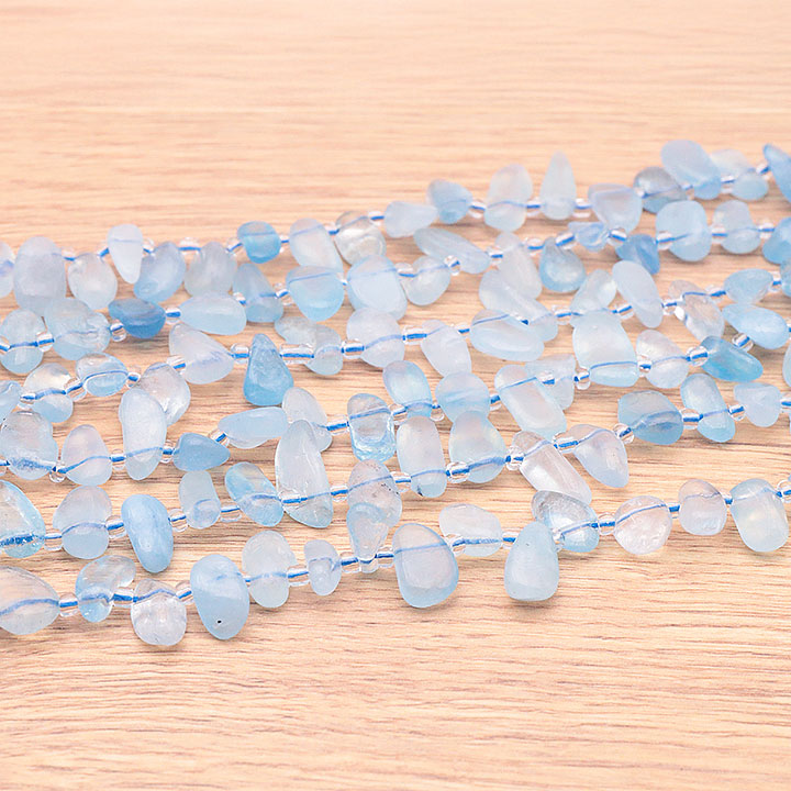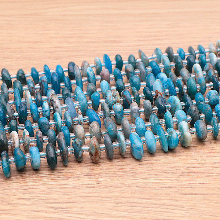 Fil de perles pierres roulées 04 x 10mm apatite bleue A