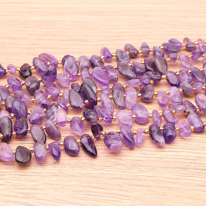 Fil de perles pierres roulées 06 x 14mm améthyste Brésil A