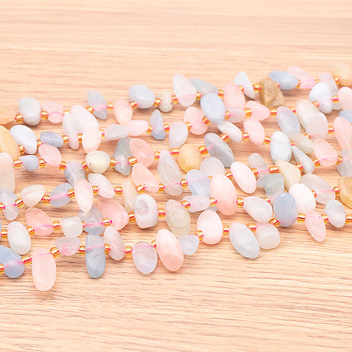 Fil de perles pierres roulées 06 x 14mm béryls AA