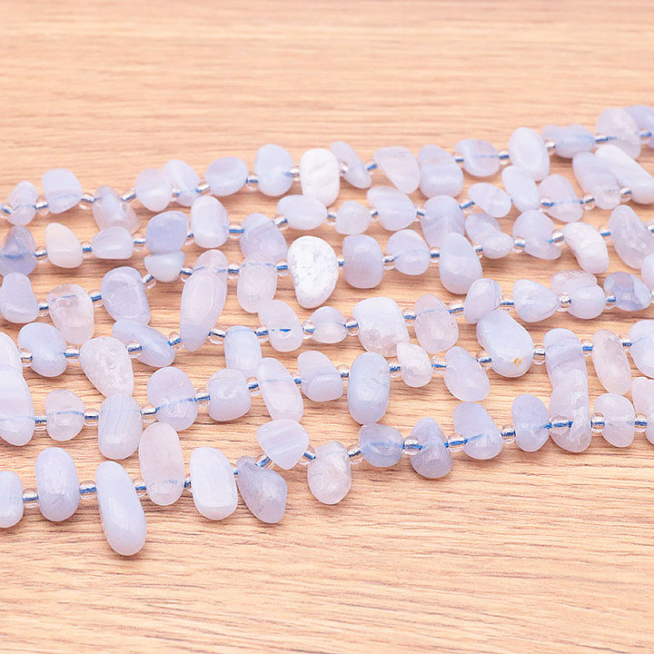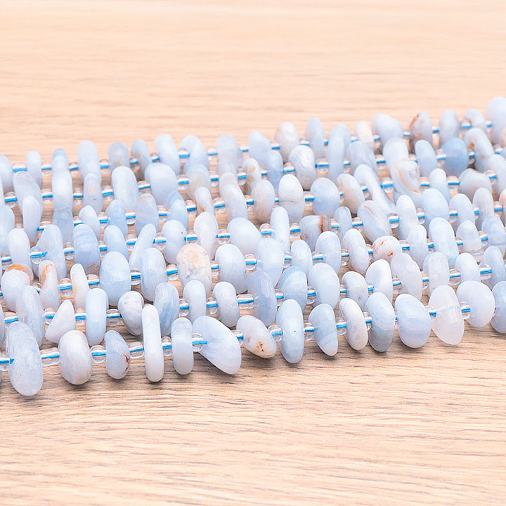 Fil de perles pierres roulées 04 x 10mm calcédoine bleue Namibie A