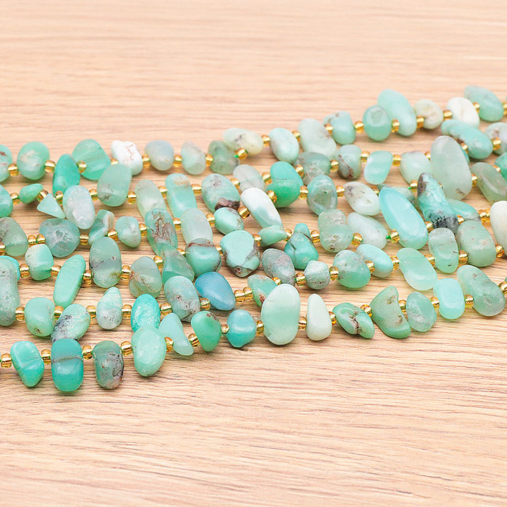 Fil de perles pierres roulées 06 x 14mm chrysoprase AA