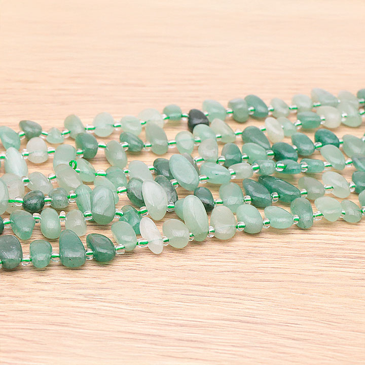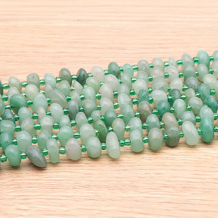 Fil de perles pierres roulées 04 x 10mm aventurine verte A