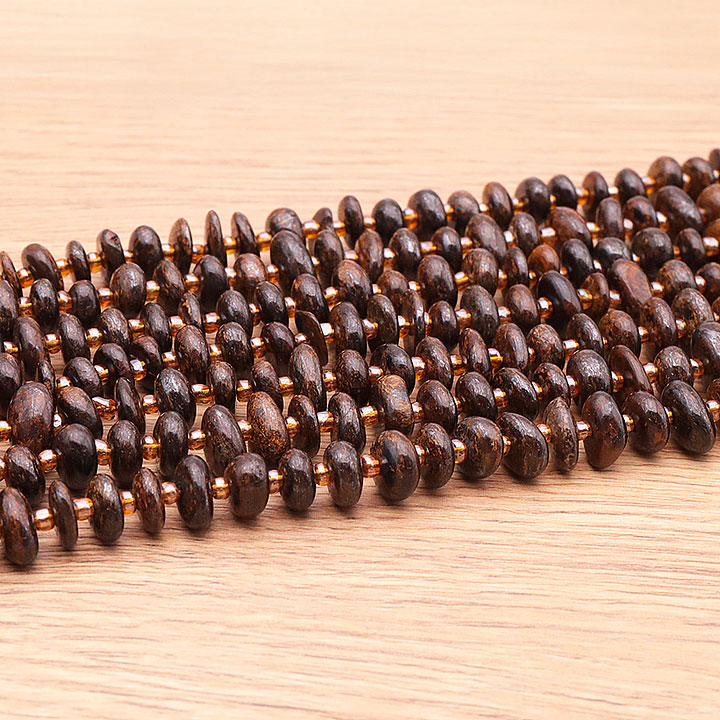 Fil de perles pierres roulées 04 x 10mm bronzite AA