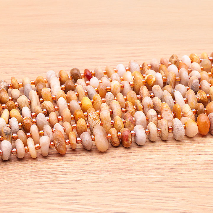 Fil de perles pierres roulées 04 x 10mm corail fossile A