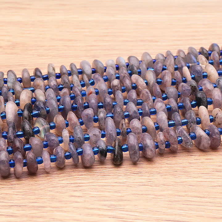 Fil de perles pierres roulées 04 x 10mm cordérite A