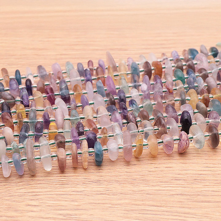 Fil de perles pierres roulées 04 x 10mm fluorine multicolore A