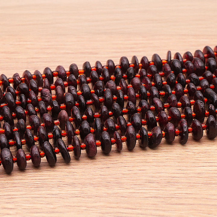 Fil de perles pierres roulées 04 x 10mm grenat rouge A