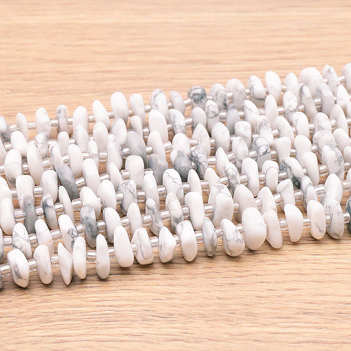 Fil de perles pierres roulées 04 x 10mm howlite blanche A