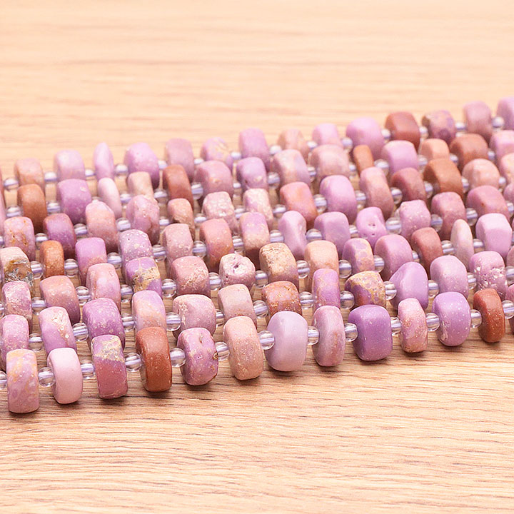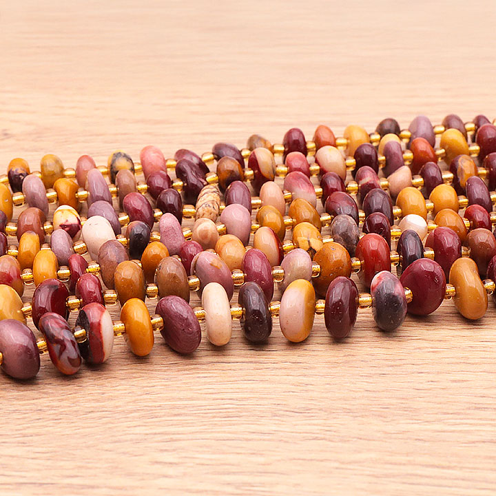 Fil de perles pierres roulées 04 x 10mm jaspe mokaïte AA